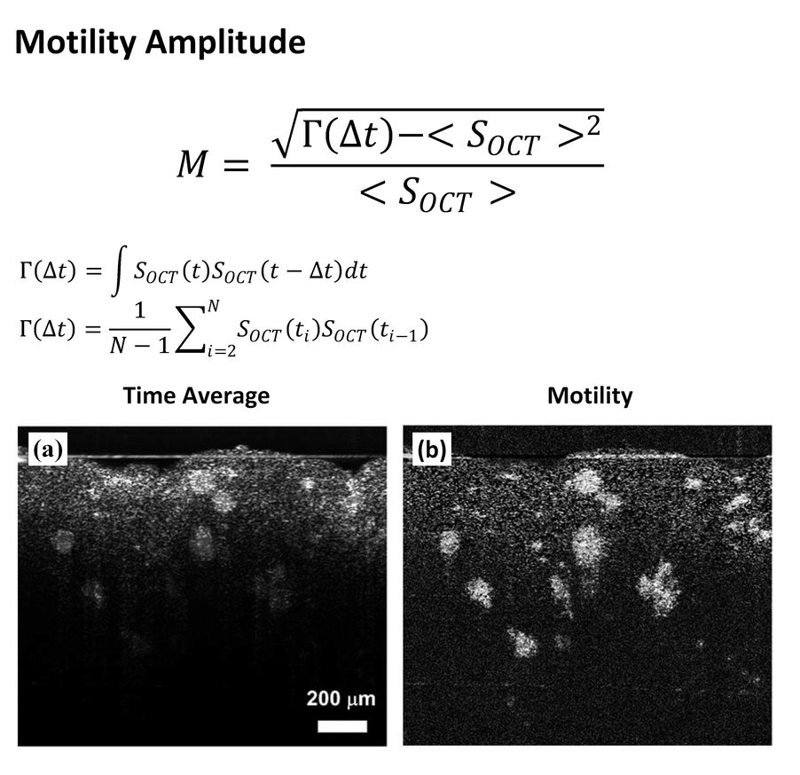 A complementary metric of fractional modulation amplitude to quantify the strength of the fluctuations was also employed, where the motility amplitude M was expressed as a modified standard deviation that was normalized by pixel intensity (Oldenburg et al., 2015), as shown in Fig.2.